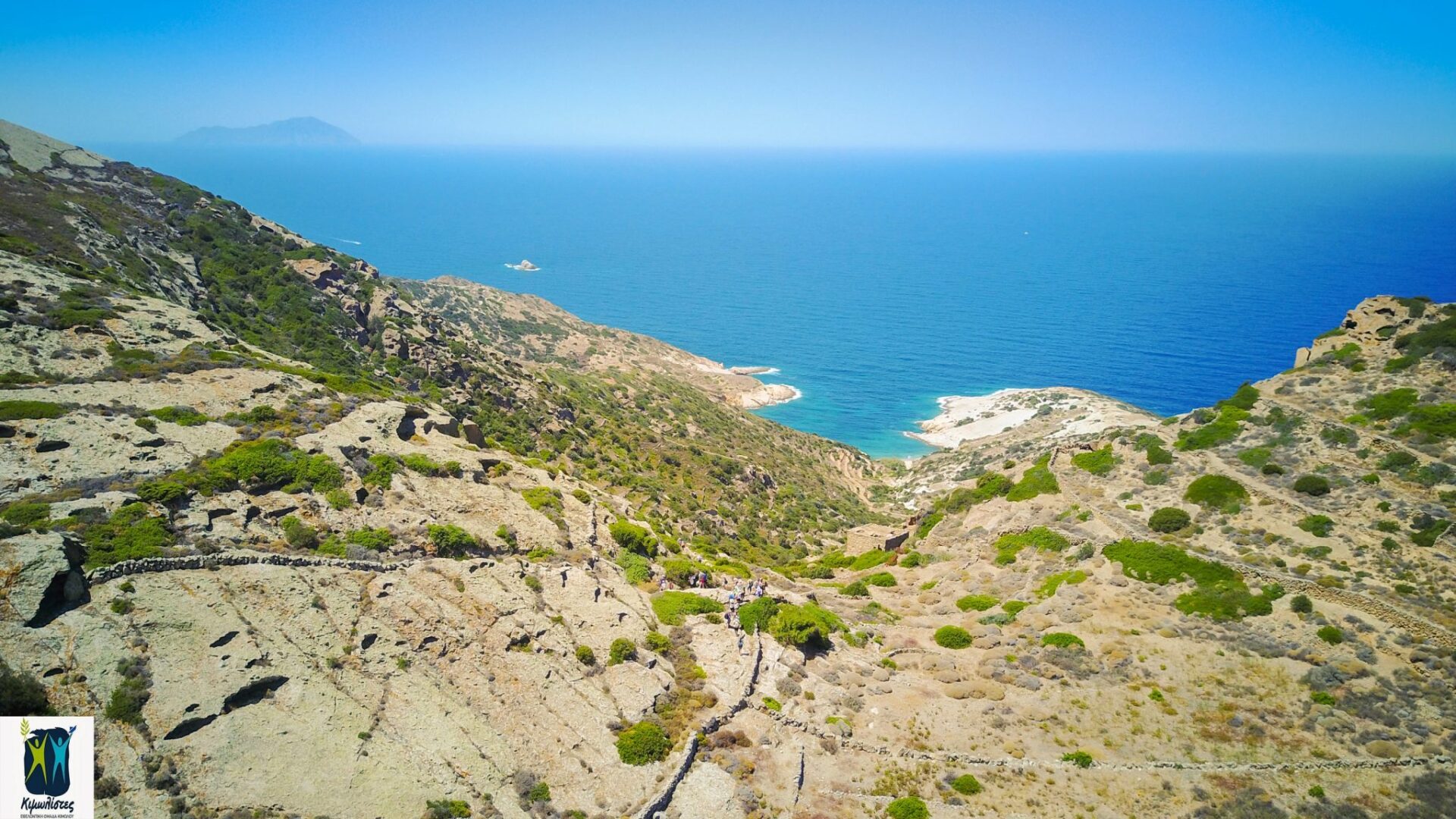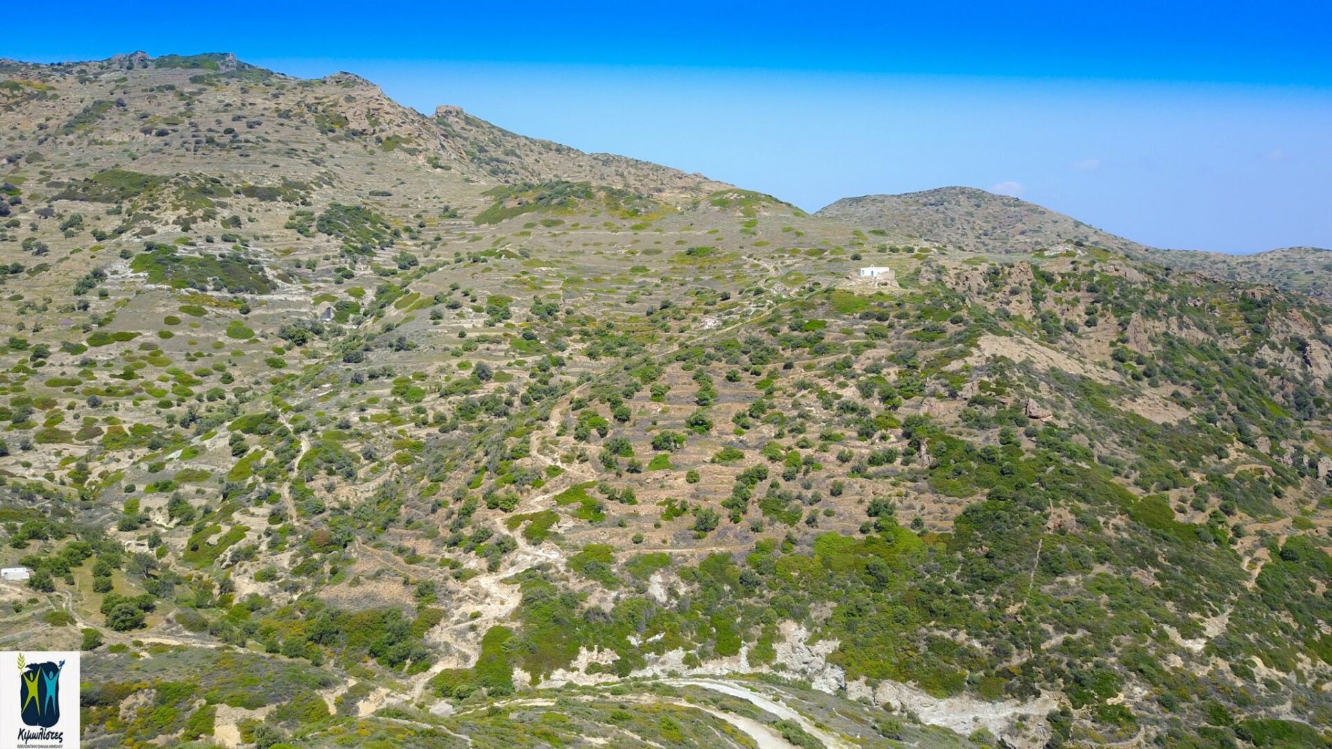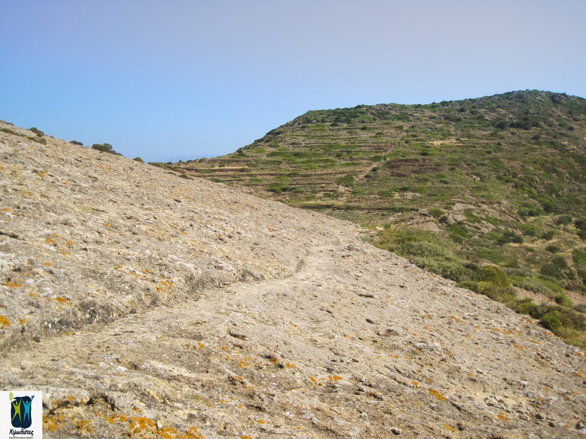 The route starts from Chorio, turns next to and left of the Agios Efstathios chapel, followed by the very well preserved Kalderimi that flows from arable olive groves to terraces and beautiful Xerolithies (small walls made of stones).