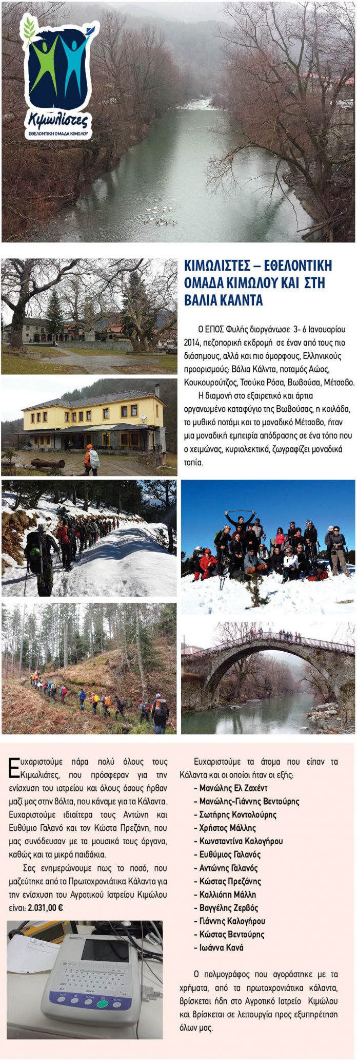 Ευχαριστούμε τον Θοδωρή Γ.Μαγκανιώτη για το αφιέρωμα στην εφημερίδα «Κιμωλιακά Νέα» Iανουάριος -Φεβρουάριος 2014.