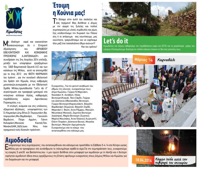 Αιμοδοσία(5-4-14)-Let’s do it(6-4-14)-Kιμωλίστες-Δήμος Κιμώλου-We dit it!